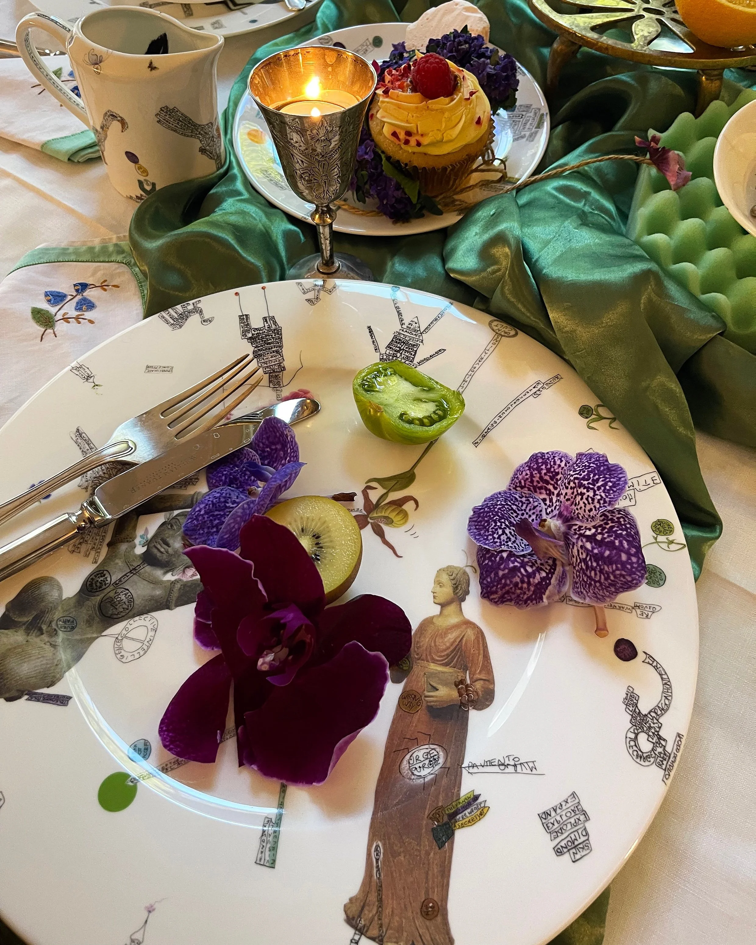 Spirits served on ceramic altars for small gods. Plates as prayers, table as temple.